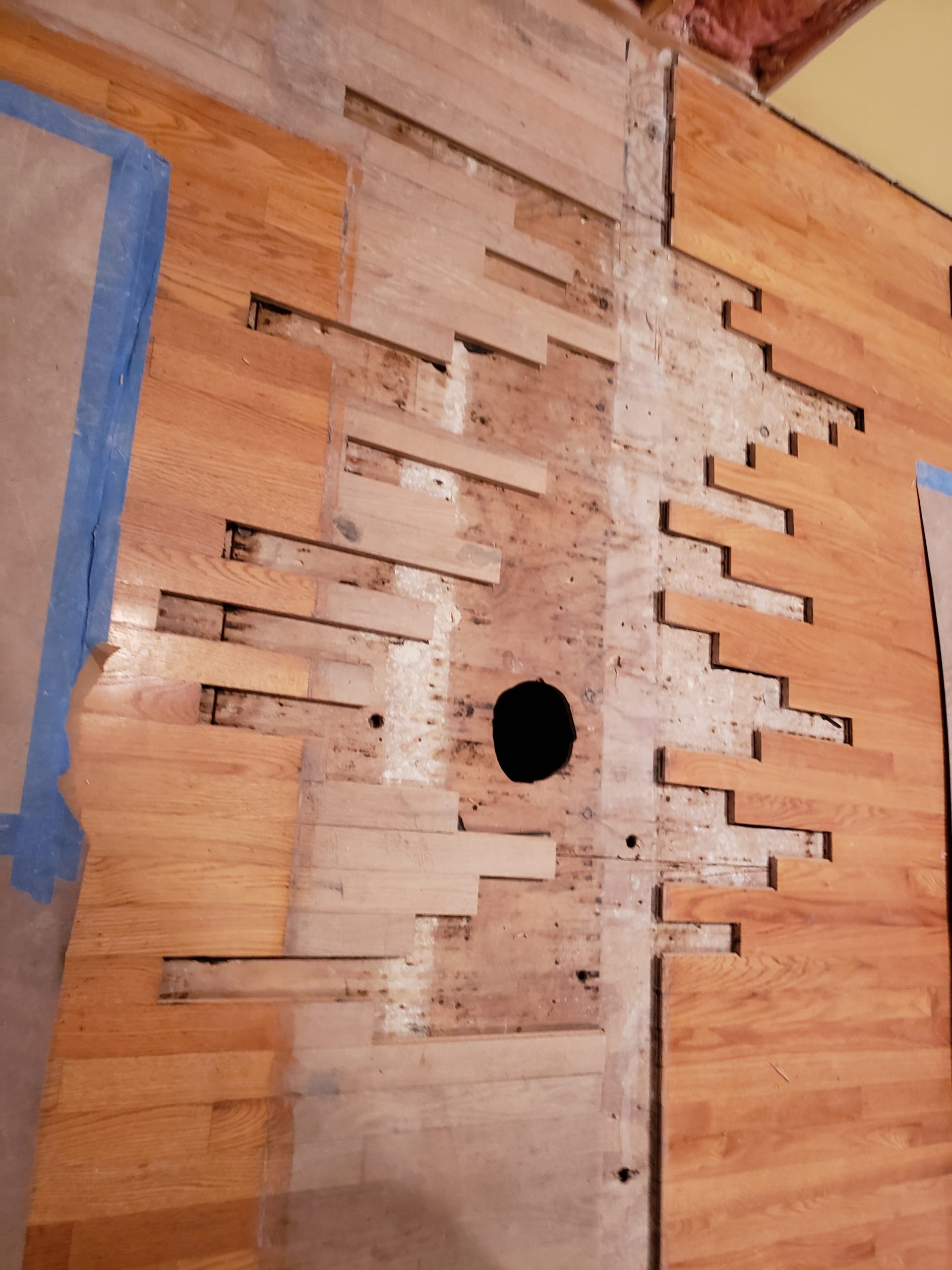 Old floor removal, subfloor preparation and leveling, and targeted maintenance/repairs.
